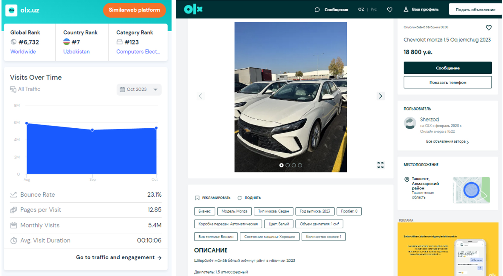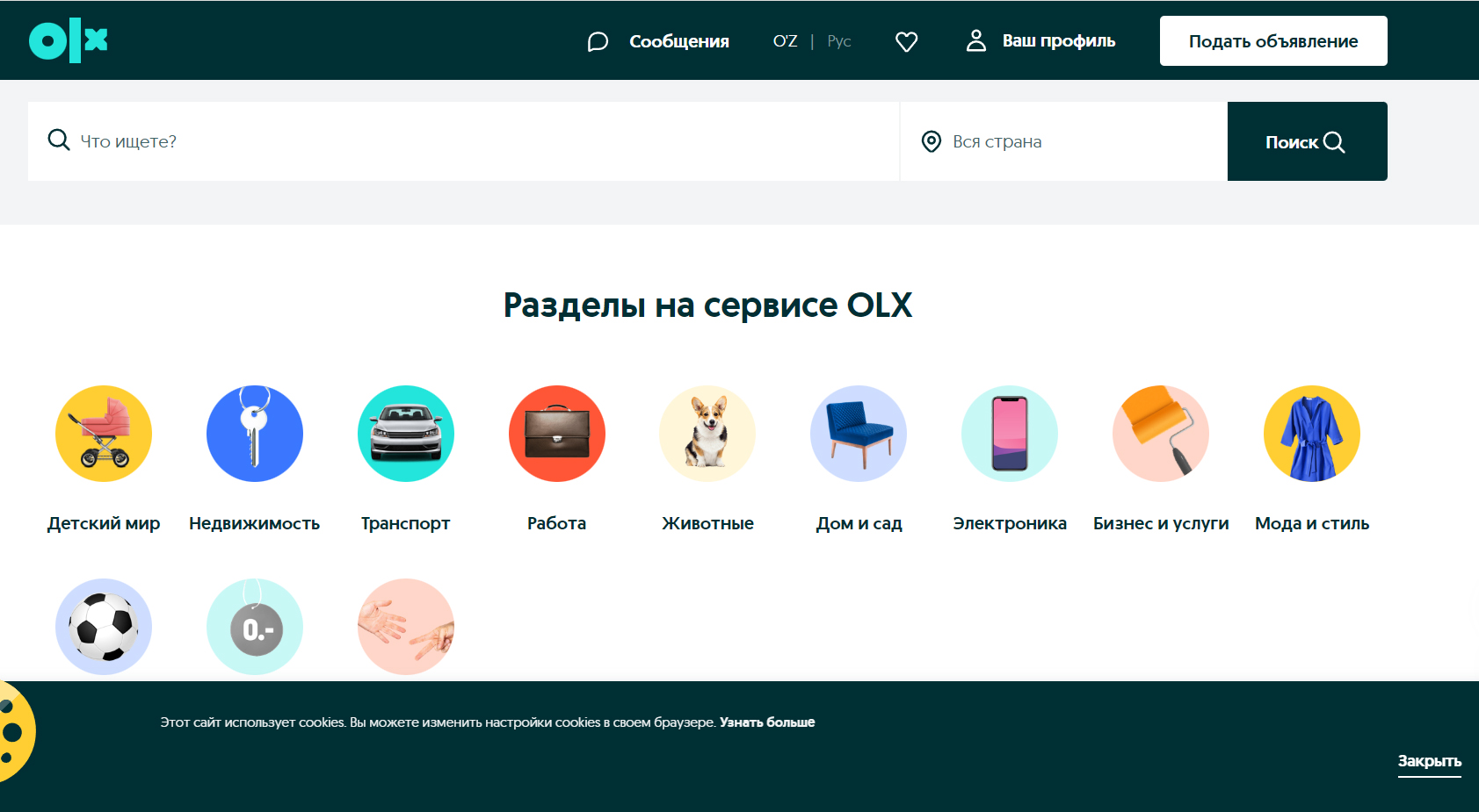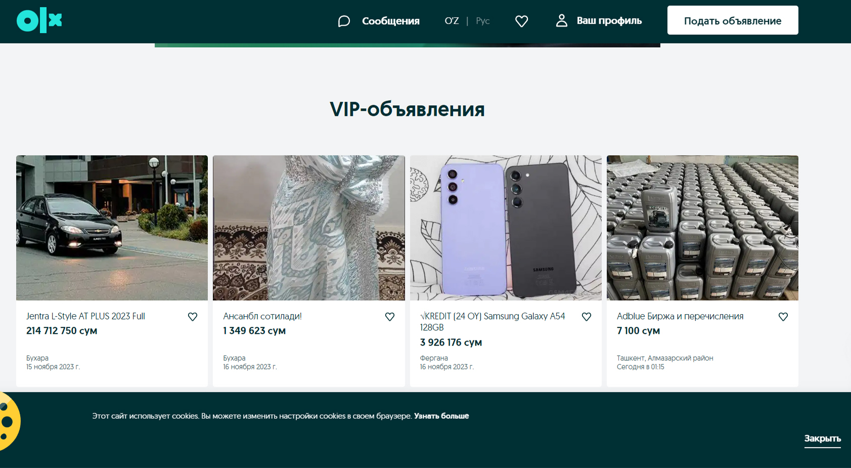 乌兹别克斯坦的OLX是一个在线分类广告平台,允许个人和公司在其平台上发布有关房屋、汽车、家具、电子产品等二手物品的广告信息,以及找工作、招聘等相关服务。OLX平台于2010年在乌兹别克斯坦上线,成为乌兹别克斯坦最大的在线二手物品交易平台之一。OLX平台的用户可以免费发布广告,并与感兴趣的买家通过平台交流达成交易。OLX平台在乌兹别克斯坦流行度极高,现在已经成为了当地人购买和出售二手物品的首选平台之一。