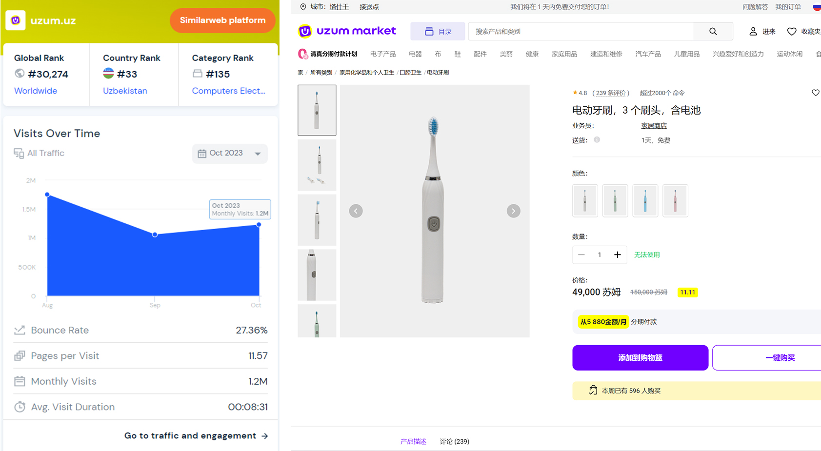 UZUM平台是由乌兹别克斯坦政府于2019年9月13日正式成立的,旨在推动乌兹别克斯坦数字经济的发展。UZUM平台的目标是促进数字化转型和创新发展,加深数字经济发展与各领域合作,为乌兹别克斯坦经济发展注入新动力。 其目前主要经营的业务包括了银行、电商、外卖、打车、物流、仓储等服务。